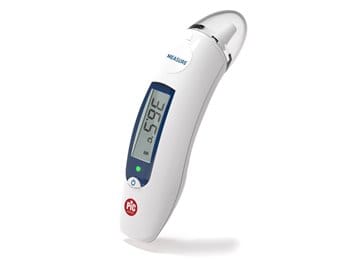Ја мери температурата на вашето дете во еден едноставен чекор: се што треба да направите е да го вметнете нежно во нивното уво и да притиснете копче. Толку е брзо и лесно што за само неколку секунди, ќе имате читање на температура.